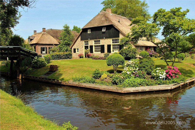 羊角村就是荷蘭濱水鄉村旅遊的一個代表性小鎮。羊角村位於荷蘭東北部的上艾瑟爾省(Overijssel),坐落於Weerribben-Wieden國家公園內,距離阿姆斯特丹約120公裏。盡管它隻是一座小村莊,但以縱橫交錯的運河水道、閑適安寧的田園風光、曆史悠久的茅草小屋而聞名天下。