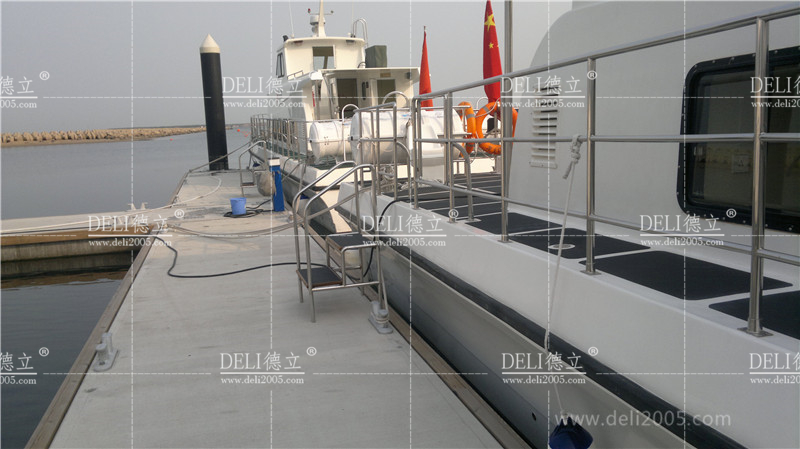 浮碼頭由碼頭麵板、鋁合金骨架/鍍鋅鋼結構骨架、PE塑料浮箱、砼預製構件浮箱組成。