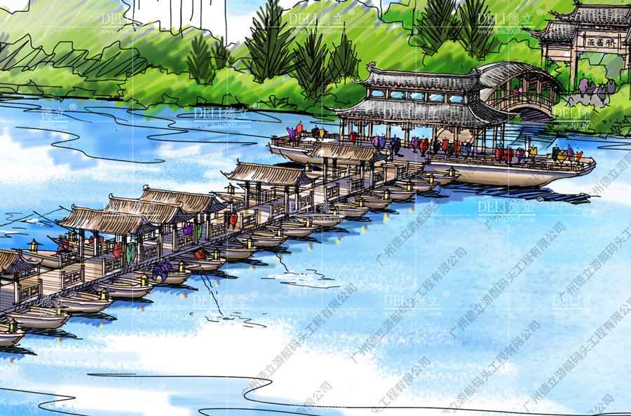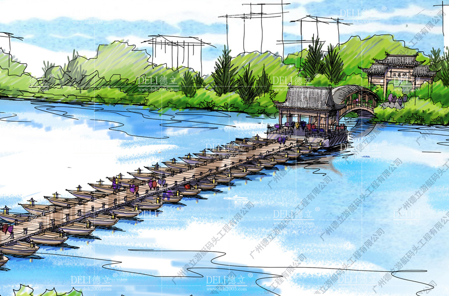 項目以“繼承”和“延續”為整體思路,還原古樸的萬善橋,在恢複場地記憶的同時延伸拓展,以浮橋作為城市的文化載體,聯係渡口、牌坊、老街……重新呈現一幅佛堂古鎮的印象畫卷。堅持古樸的風格,整體統一於古鎮。