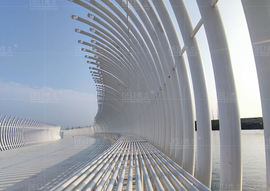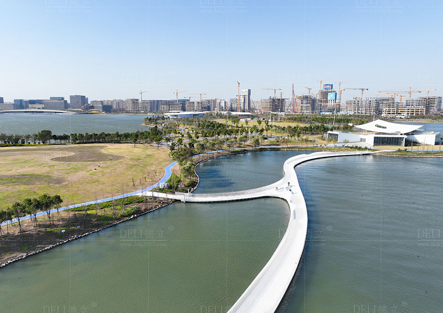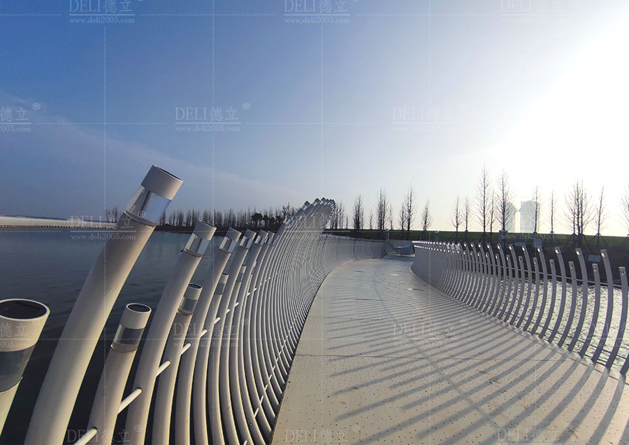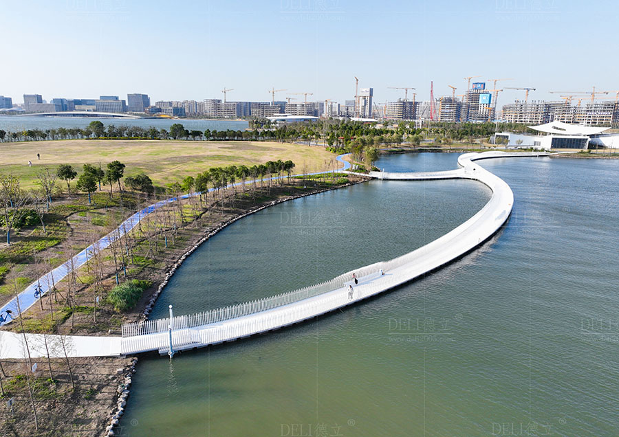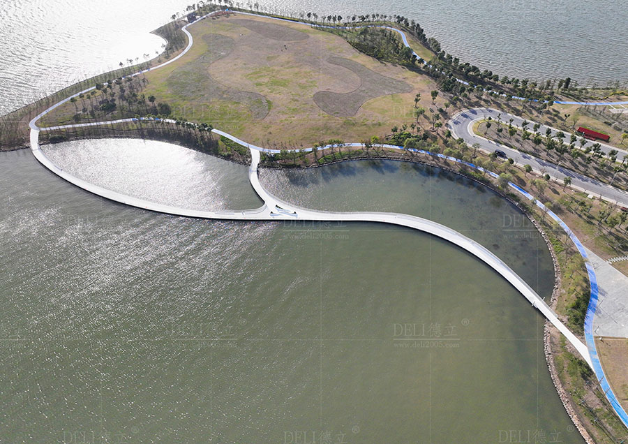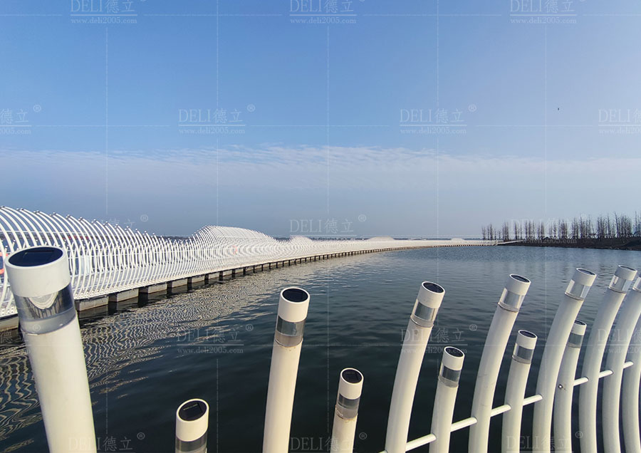 【介紹】浮橋整體采用了幹淨、簡潔的全白色調,白色的浮橋在陽光的照射下越發的清新、和諧、耀眼,使得浮橋融入了自然環境中,也讓整座浮橋顯現出潔白無暇的質感。 浮橋全長約285m,總麵積約1200㎡,浮橋平麵造型采用了寬度漸變的曲線造型,浮橋沿湖麵線漸變以達到與湖景相融合的效果,浮橋最寬處為5米,最小寬度為3米,利用了曲線的流暢弧度,展現了浮橋柔和感和流動性的形態。 浮fu橋qiao兩liang側ce設she置zhi了le異yi形xing藝yi術shu造zao型xing欄lan杆gan,欄lan杆gan的de設she計ji不bu僅jin注zhu重zhong了le造zao型xing的de美mei感gan和he藝yi術shu感gan,更geng重zhong要yao的de是shi考kao慮lv到dao欄lan杆gan的de實shi用yong功gong能neng。結jie合he了le實shi際ji需xu求qiu和he使shi用yong場chang景jing,合he理li安an排pai了le欄lan杆gan的de高gao度du、形狀,保證其安全性和舒適度,為浮橋增添了藝術的魅力,展現出獨特的個性和氣質。
