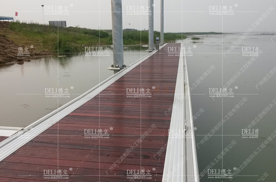 梧桐湖遊艇碼頭屬於鋁合金結構遊艇碼頭,是由我司負責施工圖設計及施工總承包。碼頭設計呈“豐”型布置,采用鋼管樁定位,接岸通過引橋上下滑動。