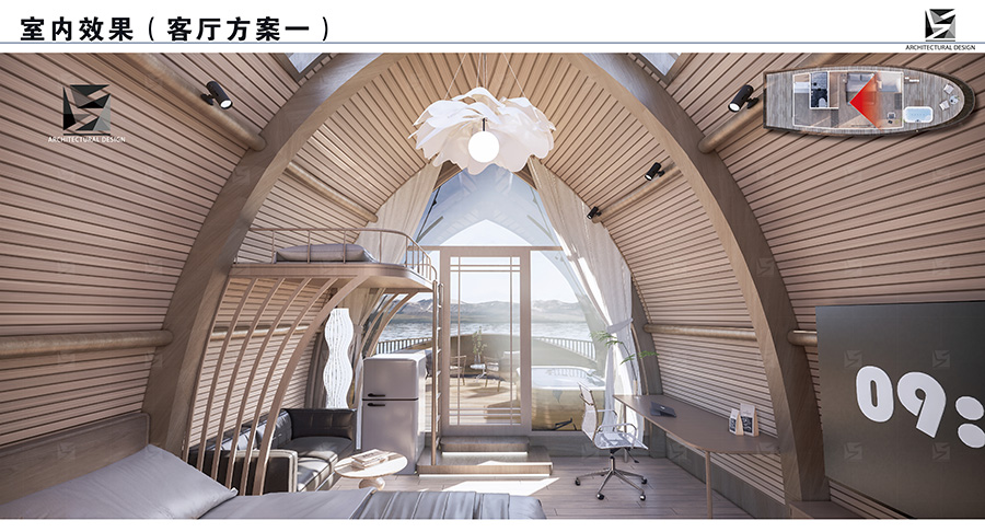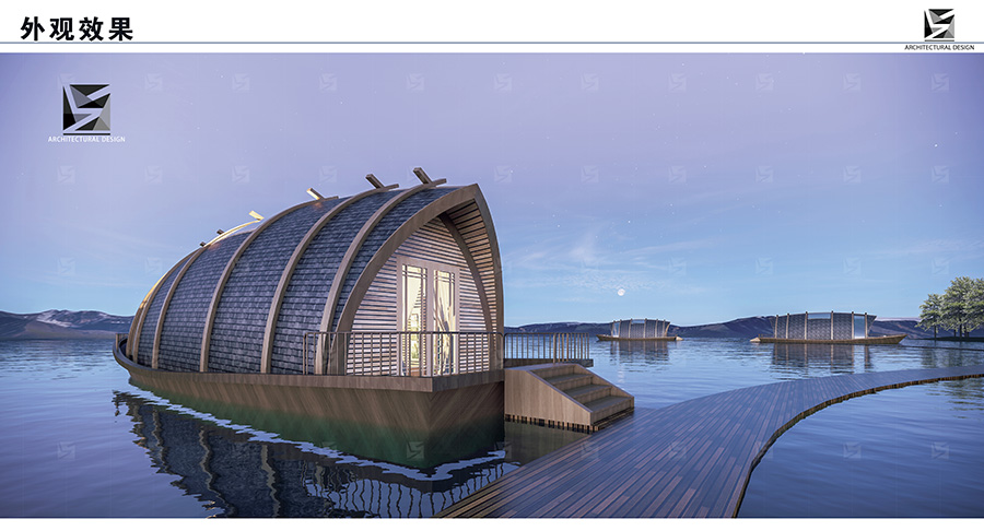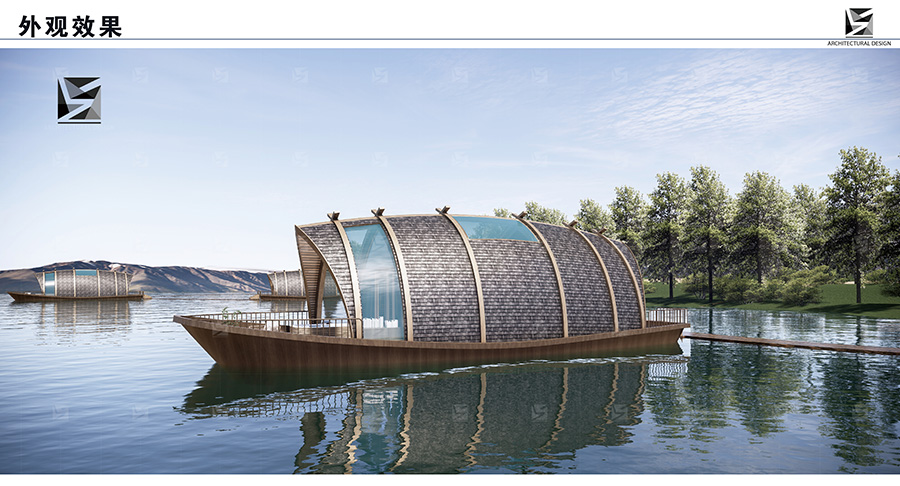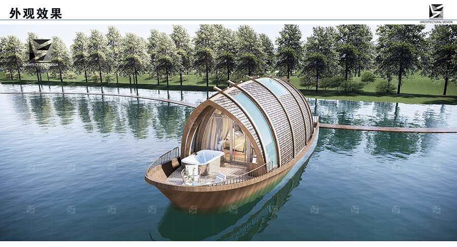 浮(fu)舟(zhou)是(shi)一(yi)款(kuan)漂(piao)浮(fu)於(yu)水(shui)上(shang)的(de)舟(zhou)體(ti)造(zao)型(xing)船(chuan)屋(wu),呈(cheng)現(xian)流(liu)線(xian)型(xing)設(she)計(ji),船(chuan)頭(tou)圓(yuan)尖(jian)而(er)船(chuan)尾(wei)寬(kuan)闊(kuo),整(zheng)體(ti)設(she)計(ji)簡(jian)潔(jie)流(liu)暢(chang),一(yi)種(zhong)顛(dian)覆(fu)傳(chuan)統(tong)建(jian)築(zhu)概(gai)念(nian)的(de)創(chuang)新(xin)形(xing)式(shi)。