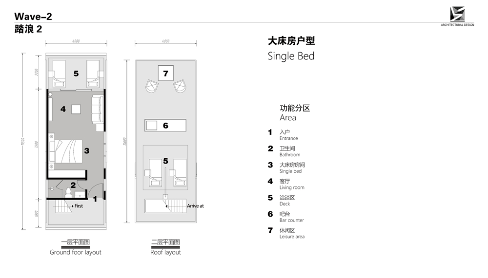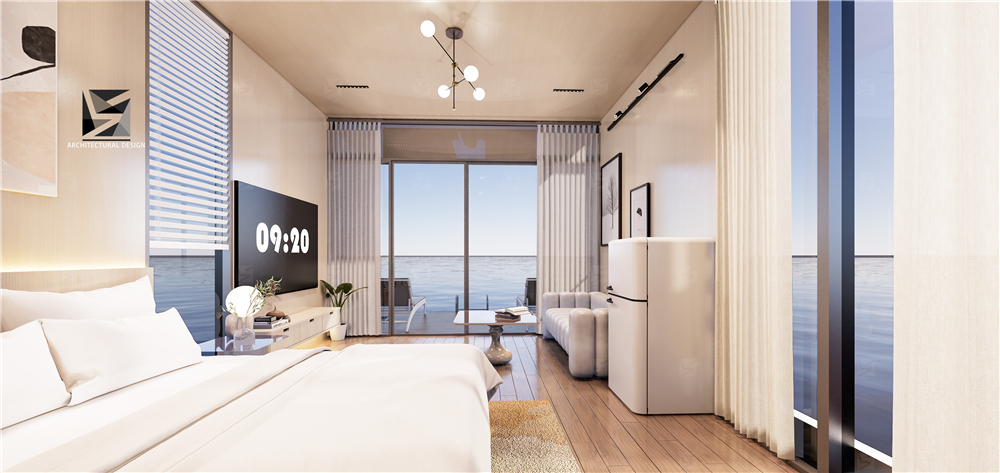 配備了客廳、衛生間、大床房、戶外露台等功能空間。