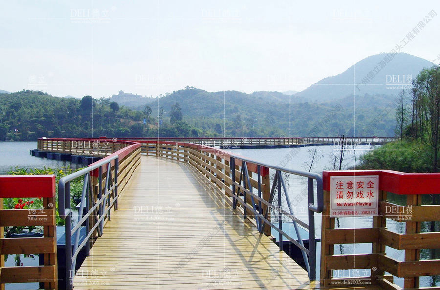 東部華僑城坐落於中國深圳大梅沙,占地近9平方公裏,是以“讓都市人回歸自然”為宗旨,以文化旅遊為特色的生態旅遊示範區,集生態動感、休閑度假、戶外運動等多項文化旅遊功能於一體,體現了人與自然的和諧共處。“茶溪穀”濕地公園浮橋,也是目前國內最長的景觀浮橋,該工程設計最大荷載300公斤/平方米,水位落差2.0米,全長386米,寬3米,采用拋錨式固定。遠處望去,它猶如一條巨龍蜿蜒於兩岸之間,盤旋環繞,指引著你進入一個童話般的世界!佇立浮橋之上,頓生輕飄之感;欣賞獨有的湖光山色、方海奇觀、懸涯飛瀑;隔著欄杆,臨水遐思與眺望,那妙不可言的姿勢,那種驚奇、快慰與滿足,至今追憶起來仍曆久彌新。 “茶溪穀”濕地公園浮橋將帶著自身特有的異彩,成為東部華僑城一道令人歎為觀止的亮麗風景線。