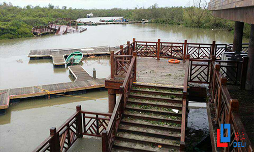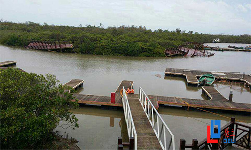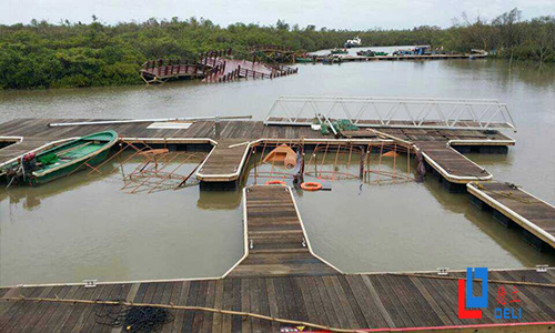 廣州德立遊艇碼頭公司在2014年3月25日與海南紅樹林股份有限公司簽訂遊艇碼頭工程合同,該項目位於海口演豐鎮紅樹東寨港,項目現在建成將近4個月了,2014年7月18日超級台風來襲,我司提前通知業主方。如何做好碼頭安全防護措施、及(ji)加(jia)強(qiang)防(fang)範(fan)等(deng)相(xiang)關(guan)工(gong)作(zuo),對(dui)抗(kang)超(chao)級(ji)台(tai)風(feng)。台(tai)風(feng)過(guo)後(hou)我(wo)司(si)遊(you)艇(ting)碼(ma)頭(tou)安(an)然(ran)無(wu)恙(yang),客(ke)戶(hu)也(ye)對(dui)我(wo)們(men)相(xiang)當(dang)好(hao)的(de)評(ping)價(jia)。說(shuo)選(xuan)擇(ze)德(de)立(li)公(gong)司(si)是(shi)對(dui)的(de)。對(dui)客(ke)戶(hu)負(fu)責(ze)。才(cai)沒(mei)有(you)造(zao)成(cheng)遊(you)艇(ting)碼(ma)頭(tou)損(sun)失(shi)。
