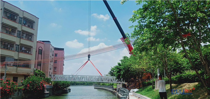 本項目位於廣州市黃埔區,為一跨河湧鋁合金橋,結構形式為桁架結構,由兩結構段組成,通過螺栓連接,總長為18米,寬度3米,重量約7噸。