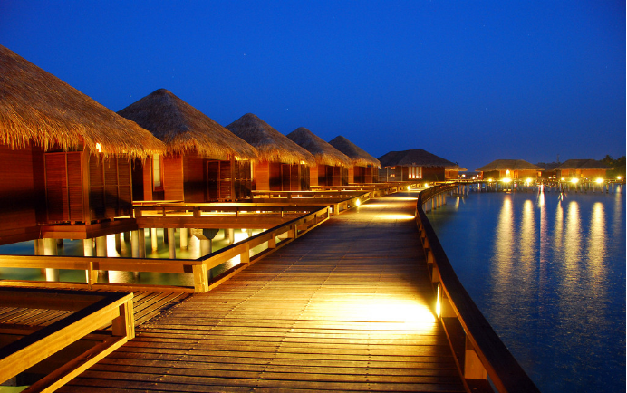 露lu天tian平ping台tai也ye是shi水shui上shang木mu屋wu的de一yi大da亮liang點dian,平ping台tai上shang可ke以yi放fang幾ji把ba躺tang椅yi,或huo是shi一yi張zhang水shui上shang吊diao床chuang,無wu論lun在zai清qing晨chen還hai是shi傍bang晚wan,或huo仰yang臥wo躺tang椅yi,或huo斜xie倚yi吊diao床chuang,即ji可ke欣xin賞shang到dao絢xuan麗li、純靜的海上日出,又能在滿天繁星下,任思緒飛揚,沉醉在天堂般的幻境之中,讓人流連忘返。