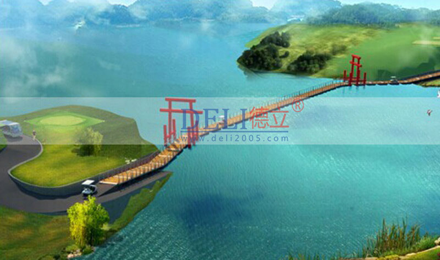 巾口浮橋由德立公司資深浮橋工程設計小組設計完成,全長148米,寬3.1m,采用鋼結構設計,可同時容納1500名遊客通行,預計使用壽命30年。