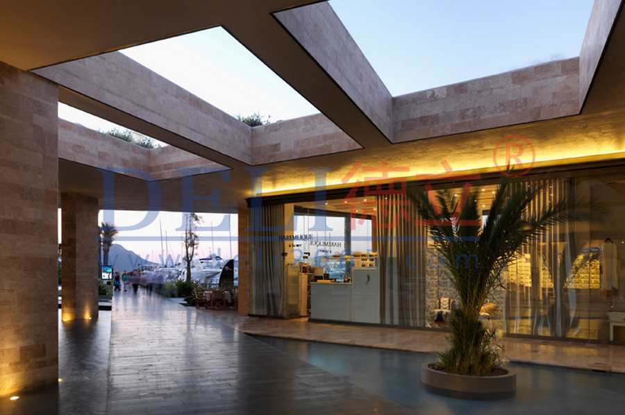這一開發方案名為“Yalikavak Palmarina”,現已分階段完成,為遊客和當地市民提供了一係列的服務設施。規劃中的“島嶼”部分屬於第一階段工程,包含有一些精選的零售店和餐廳,此外還提供了遊艇碼頭設施。
