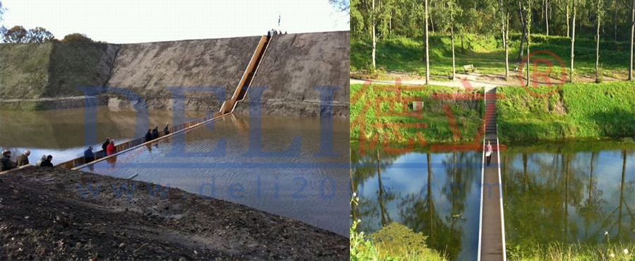 近期該地區開始向遊客開放,該區最大的堡壘Fort de Rooverexuyaojianzaoyizuogongrentongxingrenqiaoliang。baoleibeihuchenghehuanrao,zhiqianbingweixiuzhurenheqiaoliang。weilebupohuaichengbaoyuanlaidemianmao,shejishixuanzelezhezhongxiachenshidesheji。RO&AD的建築師提出的解決方案是建造一座嵌在水麵上的橋——摩西橋(Moses Bridge),凹ao陷xian的de橋qiao略lve高gao於yu水shui麵mian,遠yuan處chu看kan去qu,橋qiao的de形xing象xiang消xiao失shi在zai人ren們men眼yan中zhong。人ren們men從cong這zhe座zuo橋qiao通tong過guo,就jiu像xiang是shi神shen話hua裏li行xing走zou在zai被bei劈pi開kai的de水shui中zhong,但dan實shi際ji上shang水shui流liu是shi連lian續xu的de。(文字參考:yeskafei.com)