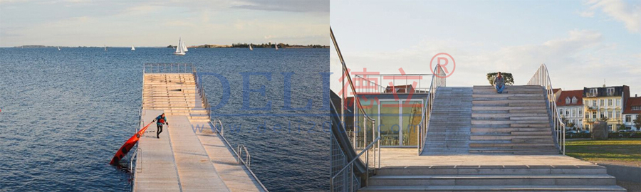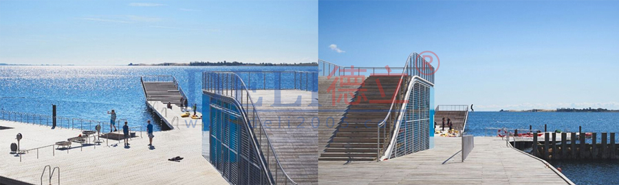 丹麥南部浴場於今年年初完成。 Faaborg海港浴場旨在打造一座開放海濱浴場,包括了更衣室,桑拿房和一個300平(ping)米(mi)的(de)廣(guang)場(chang)。碼(ma)頭(tou)之(zhi)間(jian)創(chuang)建(jian)出(chu)開(kai)放(fang)式(shi)的(de)盆(pen)地(di),這(zhe)裏(li)為(wei)人(ren)們(men)提(ti)供(gong)了(le)一(yi)個(ge)安(an)全(quan)的(de)水(shui)域(yu)以(yi)供(gong)潛(qian)水(shui)和(he)遊(you)泳(yong)。木(mu)製(zhi)碼(ma)頭(tou)經(jing)過(guo)精(jing)心(xin)的(de)設(she)計(ji),打(da)造(zao)出(chu)了(le)供(gong)兒(er)童(tong)使(shi)用(yong)的(de)坡(po)道(dao)、樓梯、座椅區和小型泳池。