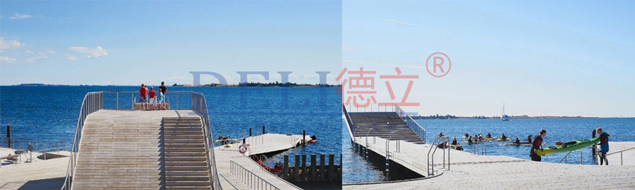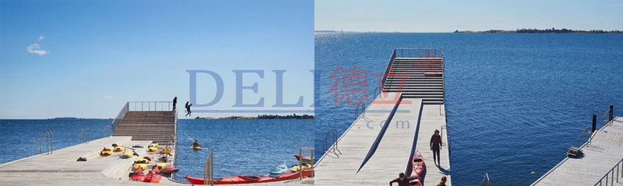 木製碼頭被精心設計,創建出坡道、樓梯、座椅區。該方案鼓勵當地居民和遊客積極參與各種水域活動。碼頭之間的小型盆地,可供人們安全的潛水。為遊客提供了便捷的往返。