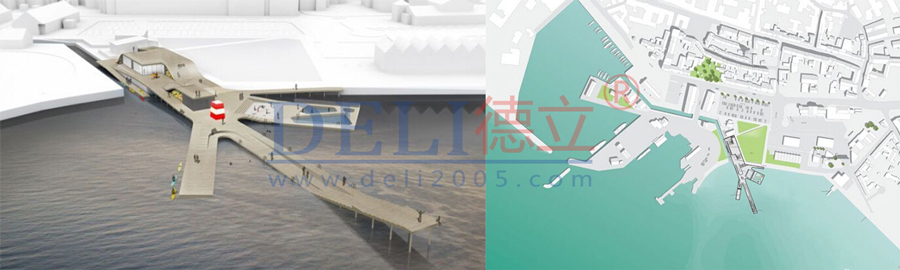 四座碼頭中最長的一座長長的延伸於水麵之上。方案創建了眾多的休息區。該設計的分支散開結構包括更衣室和一個桑拿室。