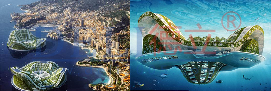 “海上城市”設計圖之“海中綠洲”&“海上城市”設計圖之“破舊立新”