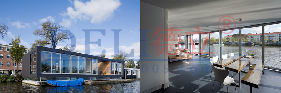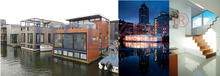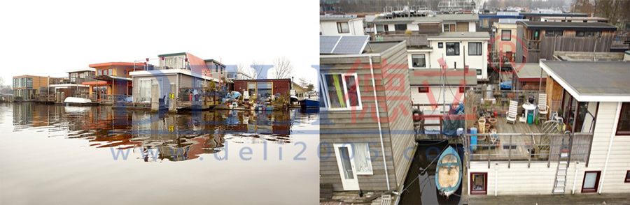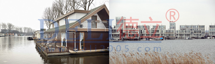 過去十年間,一種被人稱為“drijvende woning”(即“浮動住宅”)dexinxingshuishangzhuzhaiyingyunersheng。cileizhuzhaigengjiajiangu,yizhaoyingyongyuludizhuzhaidegengyangedeguifanerjian,shuyugaoduanshuishangzhuzhai。tuweiemusitedanjianzhushejishimalisi·侯麥(Marlies Rohmer)設計的IJburg項目中的浮動住宅。這個新住宅項目零零散散分布在阿姆斯特丹東部一個人工島嶼群上。
