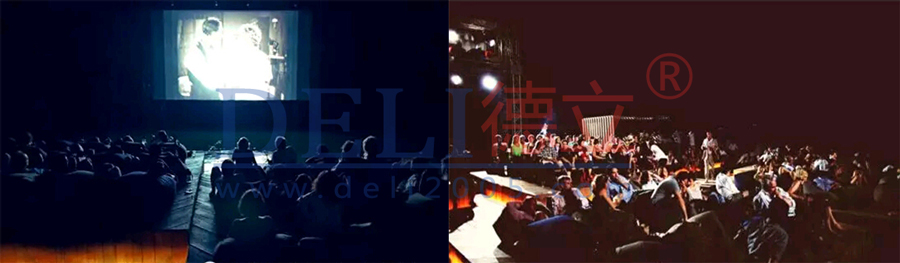 該影院的舞台和屏幕都漂浮在海麵上,周圍有精致的柱子作為支撐,結構別致,猶如童話一般 。