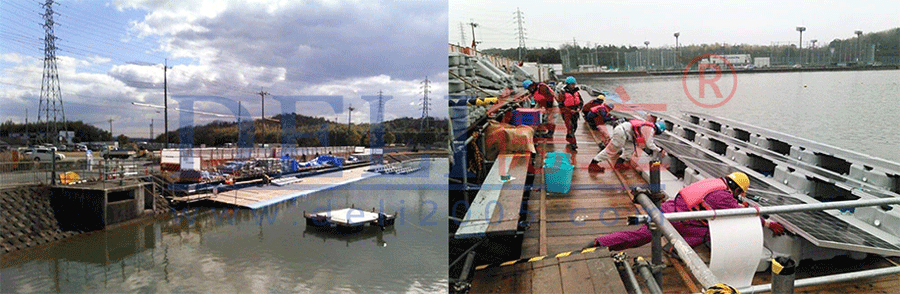 其(qi)次(ci),利(li)用(yong)浮(fu)台(tai),使(shi)太(tai)陽(yang)能(neng)電(dian)池(chi)板(ban)和(he)接(jie)線(xian)盒(he)浮(fu)在(zai)水(shui)池(chi)上(shang)。要(yao)提(ti)高(gao)這(zhe)一(yi)步(bu)驟(zhou)的(de)效(xiao)率(lv),有(you)效(xiao)的(de)方(fang)法(fa)是(shi),盡(jin)可(ke)能(neng)多(duo)地(di)在(zai)地(di)麵(mian)上(shang)作(zuo)業(ye),來(lai)減(jian)少(shao)船(chuan)上(shang)作(zuo)業(ye)。