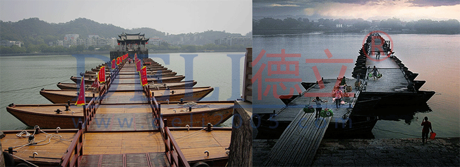 浮(fu)橋(qiao)由(you)於(yu)是(shi)漂(piao)浮(fu)於(yu)水(shui)麵(mian)之(zhi)上(shang),固(gu)建(jian)設(she)施(shi)工(gong)有(you)一(yi)定(ding)不(bu)同(tong)。以(yi)前(qian)僅(jin)求(qiu)方(fang)便(bian),使(shi)用(yong)船(chuan)隻(zhi)搭(da)建(jian)。現(xian)在(zai)的(de)建(jian)設(she)都(dou)需(xu)要(yao)有(you)一(yi)定(ding)的(de)視(shi)覺(jiao)效(xiao)果(guo),固(gu)出(chu)現(xian)既(ji)有(you)實(shi)用(yong)功(gong)能(neng),有(you)美(mei)觀(guan)大(da)方(fang),甚(shen)至(zhi)可(ke)以(yi)作(zuo)為(wei)景(jing)觀(guan)的(de)浮(fu)橋(qiao)。廣(guang)西(xi)泊(bo)盾(dun)建(jian)設(she)實(shi)用(yong)與(yu)景(jing)觀(guan)合(he)體(ti)的(de)浮(fu)橋(qiao),配(pei)合(he)欄(lan)杆(gan),燈(deng)光(guang)等(deng)弄(nong)出(chu)形(xing)式(shi)各(ge)異(yi)的(de)浮(fu)橋(qiao)景(jing)色(se)。使(shi)用(yong)色(se)彩(cai)各(ge)異(yi)的(de)浮(fu)筒(tong)拚(pin)裝(zhuang)而(er)成(cheng),並(bing)根(gen)據(ju)現(xian)場(chang)環(huan)境(jing),實(shi)際(ji)實(shi)用(yong)性(xing)變(bian)換(huan)各(ge)類(lei)造(zao)型(xing)。采(cai)用(yong)的(de)是(shi)最(zui)環(huan)保(bao)的(de)原(yuan)材(cai)料(liao),產(chan)品(pin)已(yi)達(da)到(dao)食(shi)品(pin)包(bao)裝(zhuang)的(de)標(biao)準(zhun),對(dui)水(shui)質(zhi)無(wu)汙(wu)染(ran)。從(cong)設(she)計(ji)、生產、施工,到售後的“一站式”fuwu。shiyongyusuoyoushuishanghuanjing。jinzourendexiaoxingfuqiao,keyisuishuiershangxiafudong,ganshoushuimianxingzoudelequ。guochedezhongdaxingfuqiaokeyipeihegangjia,gangban,shixianpingwenanquandexuqiu。