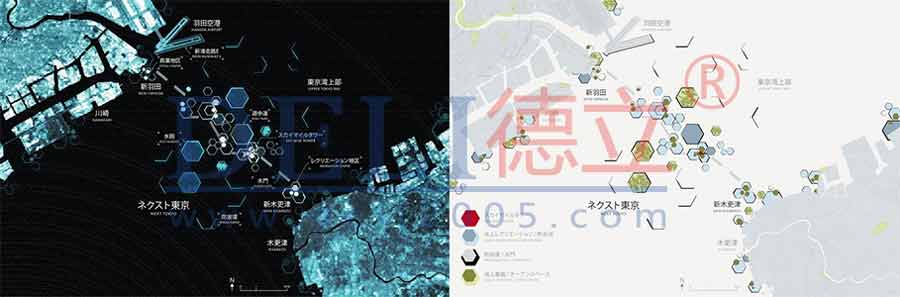 隨著近年城市化帶來的全球人口集中,大多數人都聚集在了水體的旁邊。“未來東京”項目參與了海邊超大城市的轉型,讓其能對環境具有更好的預應力。”未來東京“延(yan)續(xu)了(le)曆(li)史(shi)上(shang)對(dui)東(dong)京(jing)灣(wan)的(de)興(xing)趣(qu),並(bing)利(li)用(yong)了(le)曾(zeng)經(jing)未(wei)被(bei)使(shi)用(yong)過(guo)的(de)資(zi)源(yuan),結(jie)合(he)新(xin)陳(chen)代(dai)謝(xie)理(li)論(lun)創(chuang)造(zao)了(le)一(yi)片(pian)人(ren)造(zao)的(de)土(tu)地(di)而(er)且(qie)利(li)用(yong)了(le)先(xian)進(jin)的(de)技(ji)術(shu)。這(zhe)些(xie)基(ji)礎(chu)部(bu)分(fen)與(yu)高(gao)密(mi)度(du)垂(chui)直(zhi)發(fa)展(zhan)的(de)專(zhuan)業(ye)相(xiang)結(jie)合(he),發(fa)展(zhan)出(chu)了(le)新(xin)的(de)城(cheng)市(shi)超(chao)級(ji)建(jian)築(zhu)類(lei)型(xing)。