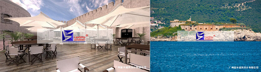 二er戰zhan時shi期qi,意yi大da利li法fa西xi斯si占zhan領ling了le這zhe片pian島dao嶼yu,在zai這zhe裏li建jian起qi了le集ji中zhong營ying。將jiang集ji中zhong營ying改gai造zao成cheng豪hao華hua度du假jia村cun的de提ti議yi雖sui然ran最zui初chu曾zeng遭zao到dao集ji中zhong營ying受shou害hai人ren家jia屬shu的de反fan對dui,但dan沒mei能neng改gai變bian最zui後hou的de結jie果guo。圖tu為wei堡bao壘lei內nei池chi塘tang流liu水shui旁pang的de戶hu外wai就jiu餐can區qu。本ben周zhou,黑hei山shan政zheng府fu通tong過guo了le將jiang集ji中zhong營ying改gai造zao成cheng四si星xing或huo五wu星xing豪hao華hua度du假jia區qu的de決jue議yi。
