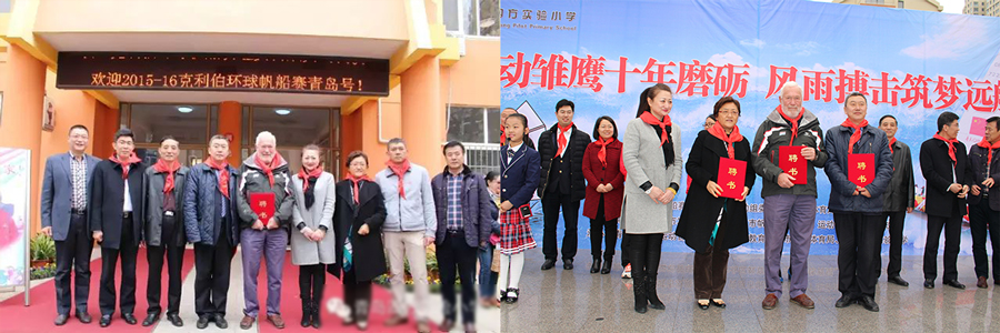 英國克利伯環球帆船賽組委會主席羅賓爵士、英國克利伯環球帆船賽組委會首席執行官威廉 沃德、青島市人大常委會副秘書長、辦公廳主任隋誌強、青島市政協專職常委林誌偉、青島市政協教科文衛體辦副主任夏振遠、青島市市北區人民政府副區長高波、青島市教育局宣傳處處長孫軍、共青團青島市委學少部副部長孫健、青島市帆船運動管理中心競賽部部長劉衛、青島市帆船運動管理中心競賽部副部長劉昕煜、共青團市北區委書記劉婧、市北區體育局副局長薑新民、市北區教育局副局長馮貢青、市北區教育局團委書記王婧、青島鄒誌船艇有限公司董事長、青島四方實驗小學名譽校長鄒誌校長、青島四方實驗小學校長孫軍一同參與了交流互動活動。