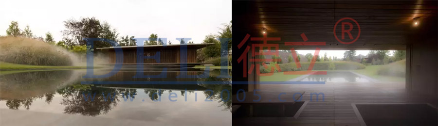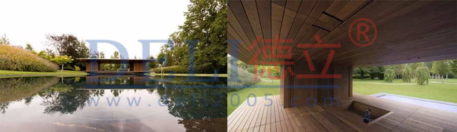 該gai館guan的de設she計ji想xiang法fa從cong空kong中zhong懸xuan停ting的de木mu製zhi體ti塊kuai與yu橫heng渡du的de水shui麵mian投tou射she而er出chu,創chuang造zao出chu一yi個ge與yu大da方fang向xiang高gao度du一yi致zhi的de整zheng體ti。周zhou邊bian的de植zhi物wu環huan境jing突tu出chu了le展zhan館guan與yu水shui麵mian之zhi間jian詩shi意yi的de關guan係xi。植zhi物wu環huan境jing也ye限xian定ding了le冥ming想xiang館guan在zai私si人ren花hua園yuan內nei的de位wei置zhi。