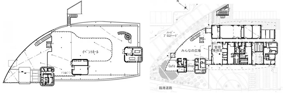 開kai闊kuo的de空kong間jian沿yan著zhe碼ma頭tou水shui岸an延yan伸shen,而er靠kao近jin海hai灣wan大da道dao的de咖ka啡fei廳ting和he商shang店dian則ze引yin導dao著zhe興xing致zhi高gao昂ang的de遊you客ke們men一yi步bu步bu走zou向xiang城cheng市shi。起qi伏fu的de巨ju大da屋wu頂ding連lian接jie著zhe一yi層ceng的de開kai闊kuo空kong間jian、二層的會堂以及露台,而室內外空間的界限隨之模糊。