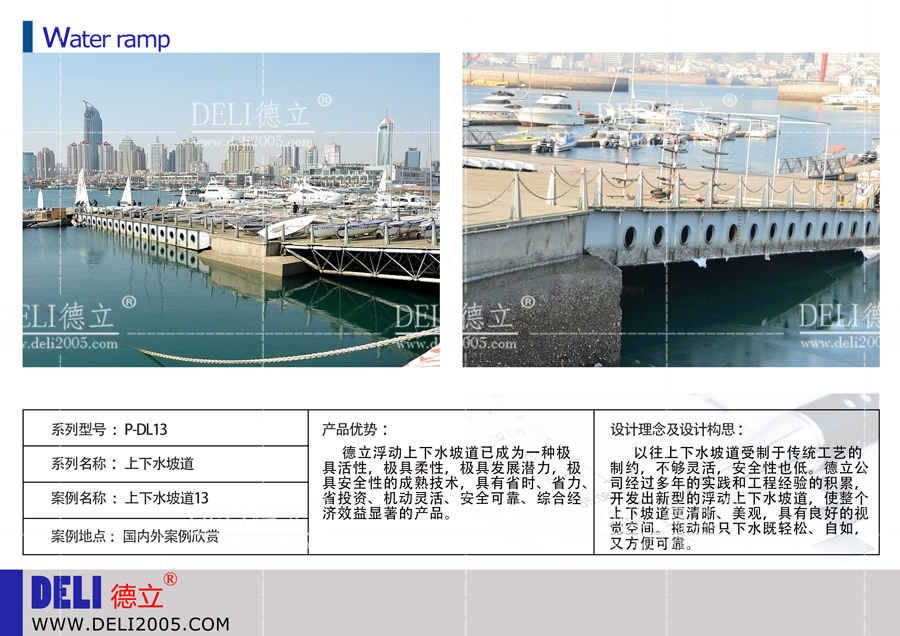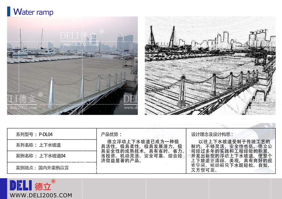德立公司是以遊艇碼頭項目(遊艇會、帆船港等)為核心,提供谘詢、規劃、設計、建造、投資、運營的綜合服務商,是行業內的資深企業。最近德立公司推出了上下水坡道係列,供谘詢。