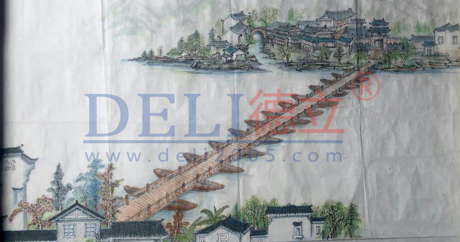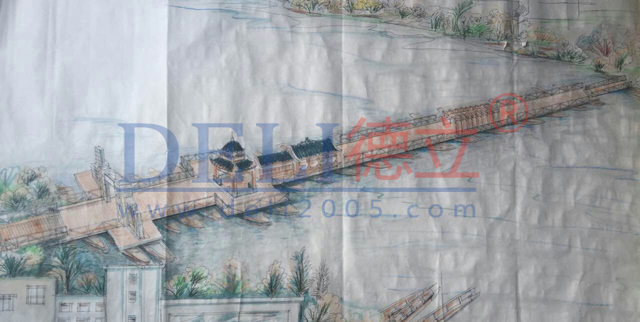 不鏽鋼型材仿古浮橋(創意設計),方案設計,地點英德黎溪驛站。