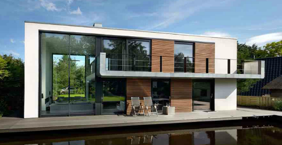 可恩•奧特斯的另一代表作Watervilla Aalsmeer的一半是在水平麵以下的。這是由於荷蘭當地對水麵建築的高度的規範要求是不得超過水平麵4公尺。為了滿足房主對大居住麵積的要求,可恩•奧特斯將地下一層建在水平麵下規(gui)劃(hua)為(wei)較(jiao)不(bu)需(xu)要(yao)光(guang)線(xian)的(de)電(dian)視(shi)房(fang)和(he)儲(chu)藏(zang)室(shi)等(deng),並(bing)大(da)量(liang)的(de)運(yun)用(yong)玻(bo)璃(li)援(yuan)引(yin)進(jin)自(zi)然(ran)光(guang)到(dao)地(di)下(xia)層(ceng),比(bi)方(fang)說(shuo)連(lian)接(jie)地(di)下(xia)一(yi)層(ceng)和(he)水(shui)上(shang)一(yi)層(ceng)的(de)是(shi)一(yi)種(zhong)玻(bo)璃(li)帶(dai)光(guang)源(yuan)的(de)透(tou)明(ming)樓(lou)梯(ti)。其(qi)次(ci)客(ke)廳(ting)的(de)落(luo)地(di)窗(chuang)讓(rang)你(ni)隨(sui)時(shi)能(neng)與(yu)河(he)流(liu)無(wu)距(ju)離(li)的(de)接(jie)觸(chu),使(shi)水(shui)成(cheng)為(wei)生(sheng)活(huo)空(kong)間(jian)的(de)真(zhen)正(zheng)延(yan)續(xu)。