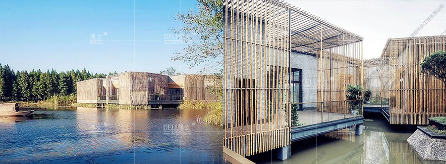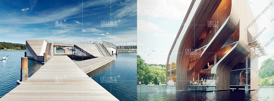 水上建築,如果是用本就取自天然的木材建成,會更有自然清新的感覺。