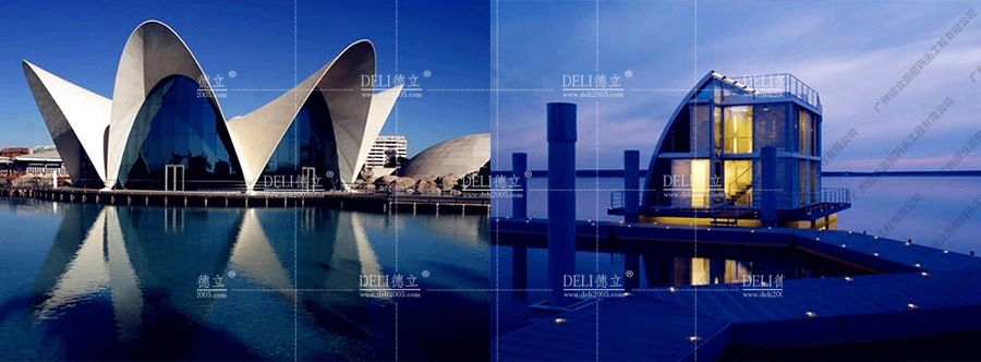 談tan到dao建jian築zhu藝yi術shu,對dui於yu水shui上shang建jian築zhu是shi存cun在zai偏pian愛ai的de。似si乎hu一yi旦dan遇yu到dao水shui,充chong滿man設she計ji感gan的de建jian築zhu,便bian會hui籠long罩zhao一yi層ceng更geng加jia靈ling動dong豐feng富fu的de美mei。水shui上shang的de建jian築zhu,美mei在zai水shui的de柔rou美mei靈ling動dong和he建jian築zhu的de剛gang毅yi硬ying朗lang相xiang輔fu相xiang成cheng。陸lu地di的de堅jian硬ying感gan被bei削xue弱ruo,少shao了le許xu多duo人ren工gong造zao成cheng的de不bu自zi然ran,多duo了le幾ji分fen純chun粹cui。