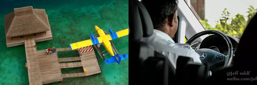 Velaa目前是水飛島,遊客往返當地國際機場和水飛機場之間需要有汽車接送。一般水飛島是通過普通的機場巴士,其中Conrad,Niyama,Constance等豪華水飛度假島有自己的專車(隻提供給這些島自己的客人使用),而Velaa酒店的專車是一台奔馳商務車。給人的感覺還是挺不錯的。