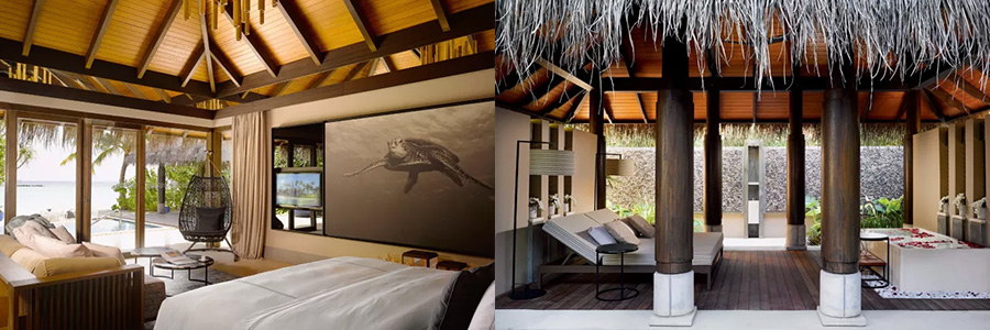 所有房間均可通往露台,按摩浴缸、泳池、陽(yang)光(guang)甲(jia)板(ban)和(he)下(xia)沉(chen)式(shi)浴(yu)池(chi)一(yi)應(ying)俱(ju)全(quan),從(cong)不(bu)同(tong)角(jiao)度(du)可(ke)觀(guan)賞(shang)到(dao)變(bian)化(hua)多(duo)端(duan)的(de)海(hai)平(ping)線(xian)風(feng)光(guang)。室(shi)內(nei)采(cai)用(yong)天(tian)然(ran)材(cai)料(liao)和(he)中(zhong)性(xing)色(se)調(tiao)裝(zhuang)飾(shi),時(shi)而(er)跳(tiao)入(ru)眼(yan)簾(lian)的(de)印(yin)度(du)紮(zha)染(ran)布(bu)元(yuan)素(su)或(huo)動(dong)物(wu)印(yin)花(hua)都(dou)洋(yang)溢(yi)著(zhe)趣(qu)味(wei)。別(bie)墅(shu)內(nei)還(hai)配(pei)備(bei)私(si)人(ren)健(jian)身(shen)房(fang)和(he)水(shui)療(liao)護(hu)理(li)房(fang),以(yi)便(bian)金(jin)字(zi)塔(ta)尖(jian)的(de)情(qing)人(ren)們(men)可(ke)以(yi)足(zu)不(bu)出(chu)戶(hu),日(ri)日(ri)朝(chao)夕(xi)相(xiang)處(chu)。