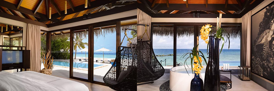 Velaa私人島總共有47間別墅,豪華別墅和四居室的豪華家庭別墅。18間水上泳池別墅之中,獨具特色的浪漫泳池別墅隻能乘船到達,為客人創造了更多私人空間和寧靜意境。