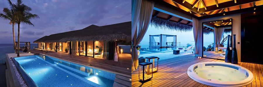 浪(lang)漫(man)泳(yong)池(chi)別(bie)墅(shu)果(guo)真(zhen)極(ji)盡(jin)浪(lang)漫(man)之(zhi)能(neng)事(shi),獨(du)立(li)於(yu)潟(潟)湖(hu)之(zhi)上(shang),極(ji)具(ju)私(si)密(mi)性(xing),僅(jin)能(neng)靠(kao)船(chuan)舶(bo)抵(di)達(da),擁(yong)有(you)一(yi)望(wang)無(wu)垠(yin)的(de)寬(kuan)闊(kuo)海(hai)洋(yang)視(shi)野(ye),私(si)密(mi)與(yu)浪(lang)漫(man)難(nan)以(yi)企(qi)及(ji),更(geng)有(you)私(si)人(ren)廚(chu)師(shi)和(he)管(guan)家(jia)提(ti)供(gong)無(wu)微(wei)不(bu)至(zhi)的(de)貼(tie)心(xin)服(fu)務(wu)。是(shi)神(shen)仙(xian)眷(juan)侶(lv)的(de)首(shou)選(xuan)。