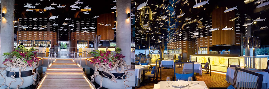 Velaa的de名ming稱cheng來lai源yuan於yu世shi世shi代dai代dai棲qi息xi在zai這zhe片pian海hai島dao上shang的de海hai龜gui。設she計ji中zhong微wei妙miao地di融rong入ru海hai龜gui殼ke的de顏yan色se與yu圖tu案an,從cong遠yuan處chu鳥niao瞰kan島dao嶼yu,水shui上shang別bie墅shu好hao似si海hai龜gui頭tou部bu,島dao嶼yu便bian是shi海hai龜gui的de身shen體ti。島dao嶼yu的de設she計ji出chu自zi捷jie克ke建jian築zhu師shi Petr Kolar 之手,現代化的整體設計中不乏私密元素和馬爾代夫的獨特風情。