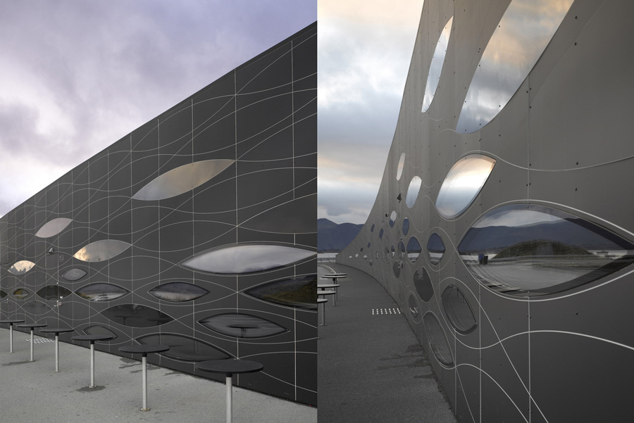 在項目的概念與工程裏,Eldhusøya 描畫出了整體的交通基礎設施和對周邊自然景觀的適應性,並借鑒了海運與近海工業的材料與預製技術。