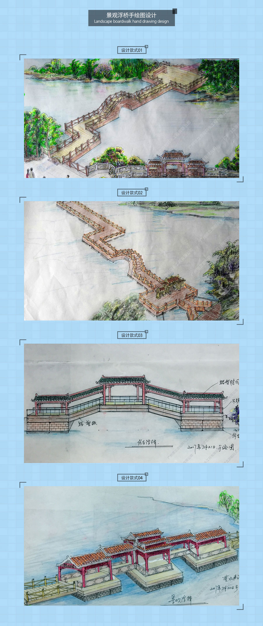 景觀浮橋手繪圖設計
