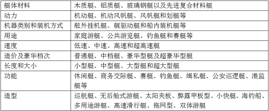 遊艇一詞在《新華漢語詞典》中的解釋是:遊船,供遊覽觀看的船。在歐洲的法律上對於遊艇的界定是作為水上的移動裝置的航行器具或者是設備,且用於非牟利的海上運動、釣魚運動,亦或是娛樂。而無論是《中華人民共和國遊艇管理規定》還是《中國船級社遊艇檢驗規範》中規定也同樣將遊艇定義為非營業性的水上交通、遊覽觀光、娛樂的船艇。