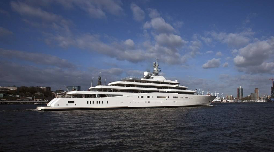 一艘價值超過6億美元名為“阿紮姆”號的超級遊艇打破世界紀錄,成為目前全球最大的遊艇。這艘遊艇長180米,高度相當於12輛雙層巴士,總排水量達到14000噸,全麵超越了英超切爾西隊老板俄羅斯寡頭羅曼·阿布拉莫維奇所擁有的“日蝕”號遊艇。