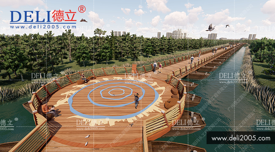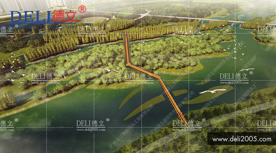 高坪通往印象嘉陵江上中壩濕地公園有兩座浮橋。這兩座浮橋均由德立設計!