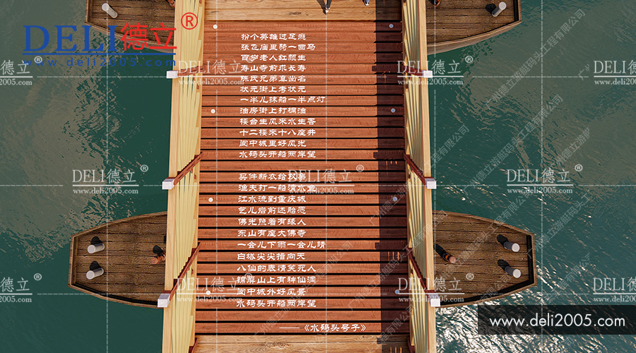2018年,由廣州德立集團規劃設計的《印象係列之南充嘉陵江景觀浮橋》一經問世,便獲得當地政府有關單位的一致好評!是南充嘉陵江景觀浮橋的施工藍圖!其巧妙結合船工號子元素,為浮橋注入了靈魂!