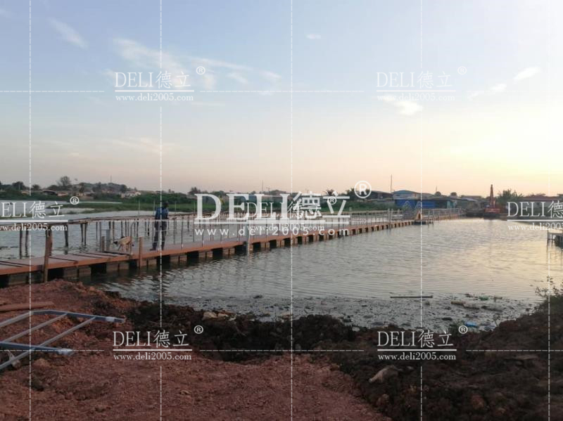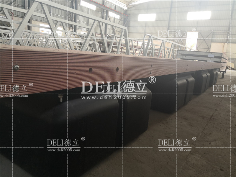這座浮橋通過了BV認證。它采用木塑麵板,所有的鋼材都是鍍鋅的,價格便宜,使用壽命長。