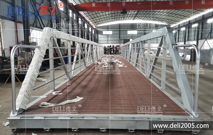 引橋主要作用在於聯係堤岸和浮橋,鋁合金結構桁架輕巧美觀,使用壽命長,安裝方便快速,無需維護,並可回收利用。
